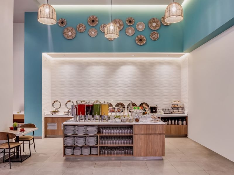 Desayuno Buffet, lunes a viernes de 6 am a 10 am y sábado y domingo de 7 am a 11 am.