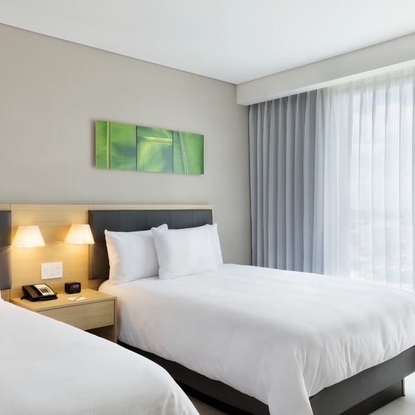 Comparte tu estancia en la Superior Room Doble, equipada con dos camas matrimoniales que garantizan comodidad y un descanso pleno para quienes viajan juntos.
