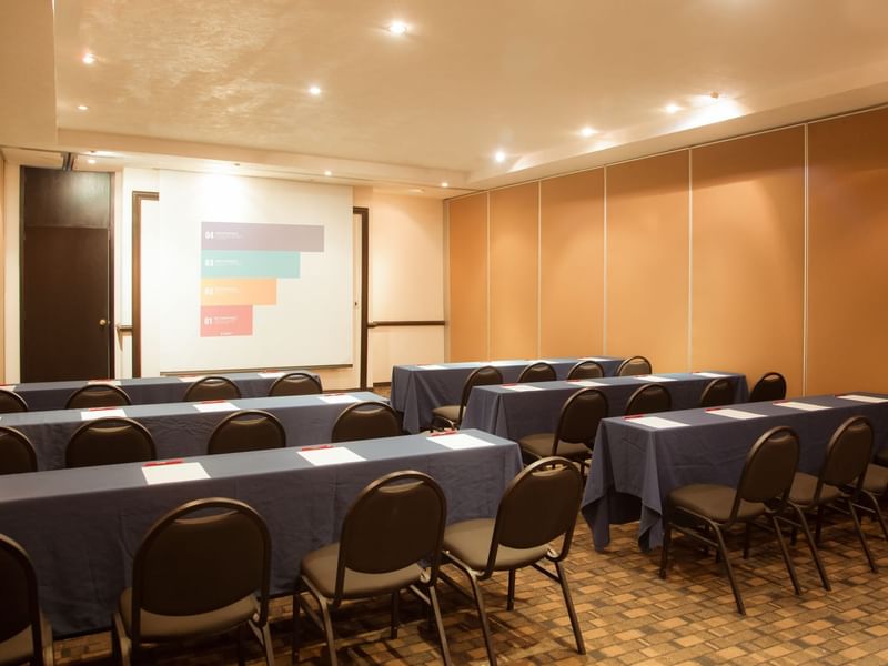 Planea el tipo de evento que tengas en mente, nosotros organizaremos lo que desees. El salón ABCD tiene capacidad para albergar hasta 220 personas. Está equipado con todo lo necesario para que tus invitados vivan una gran experiencia. Nuestro equipo te apoyará en todo momento.
