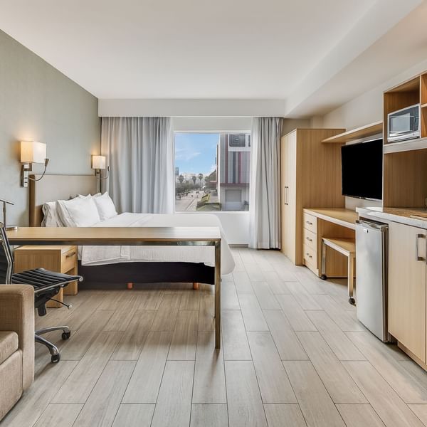 Aprovecha la amplitud de tu suite para lograr cada uno de tus objetivos. Queremos verte triunfar y por eso te apoyamos brindándote con un ambiente cálido y un mobiliario cómodo, te ayudará a cumplir tus planes.