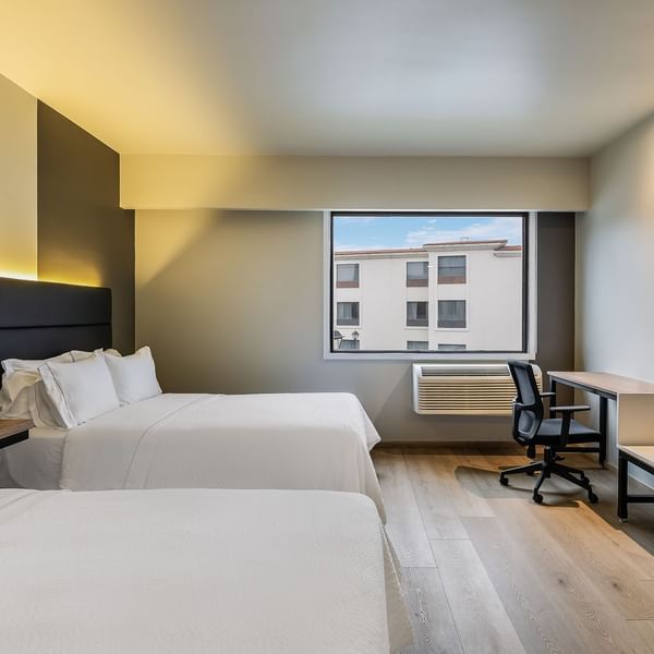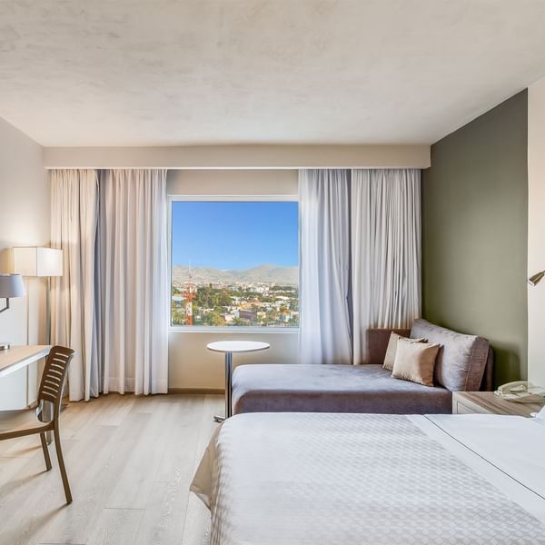 Después de alcanzar tus objetivos, relájate en la comodidad de nuestras habitaciones. Disfruta de un delicioso platillo en el restaurante o, si prefieres quedarte en tu habitación, aprovecha nuestro servicio de room service. Tómate un momento para ejercitarte en el gimnasio o darte un chapuzón en la alberca. Atiende tus pendientes en B-ON, ya sea en el Business Center o en la sala de juntas. Además, para tu mayor comodidad, contamos con Bienvenida Digital, que te permite realizar tu check-in de forma rápida y segura desde nuestros Kioscos Digitales.