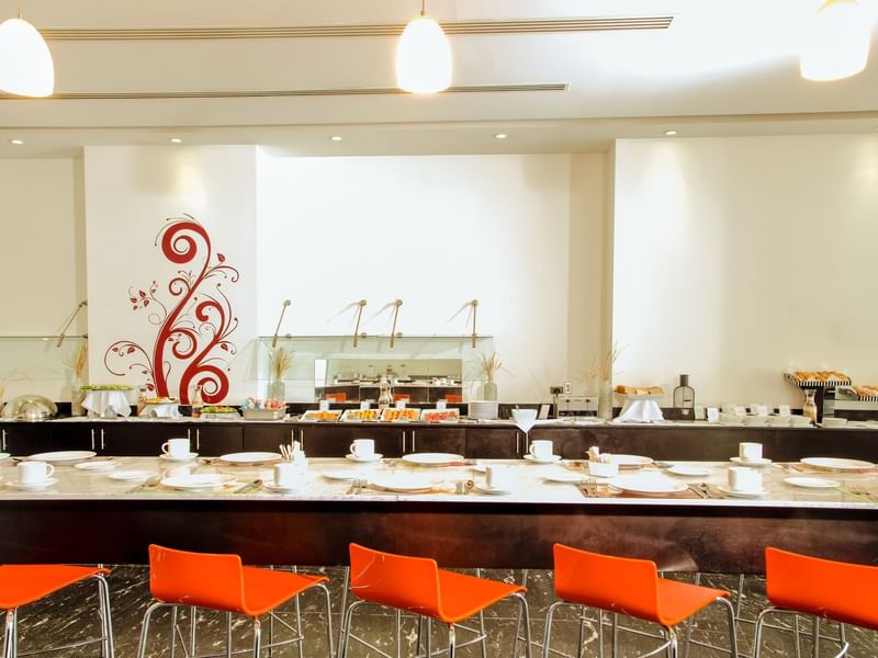 Desayuno Buffet, lunes a viernes de 6 am a 10 am y sábado y domingo de 7 am a 11 am.