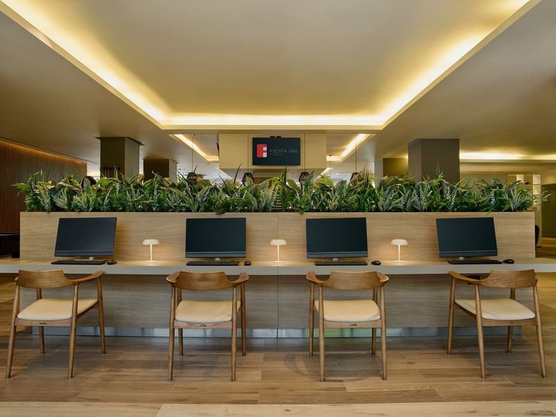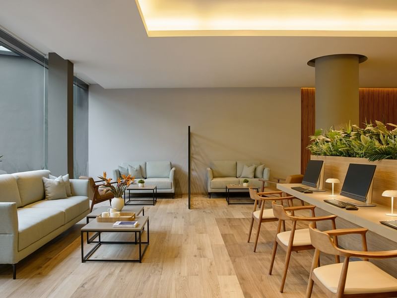 Ubicado en una zona tranquila del hotel, B-ON cuenta con una amplia mesa de trabajo equipada con computadoras de uso gratuito, ideal para quienes necesitan revisar correos, atender videollamadas o avanzar en sus proyectos.