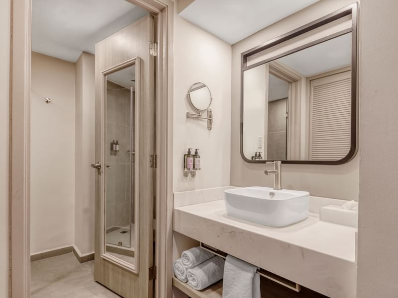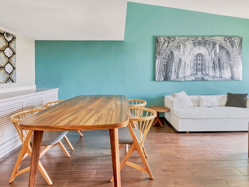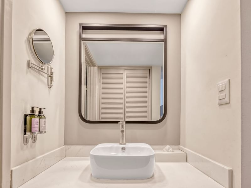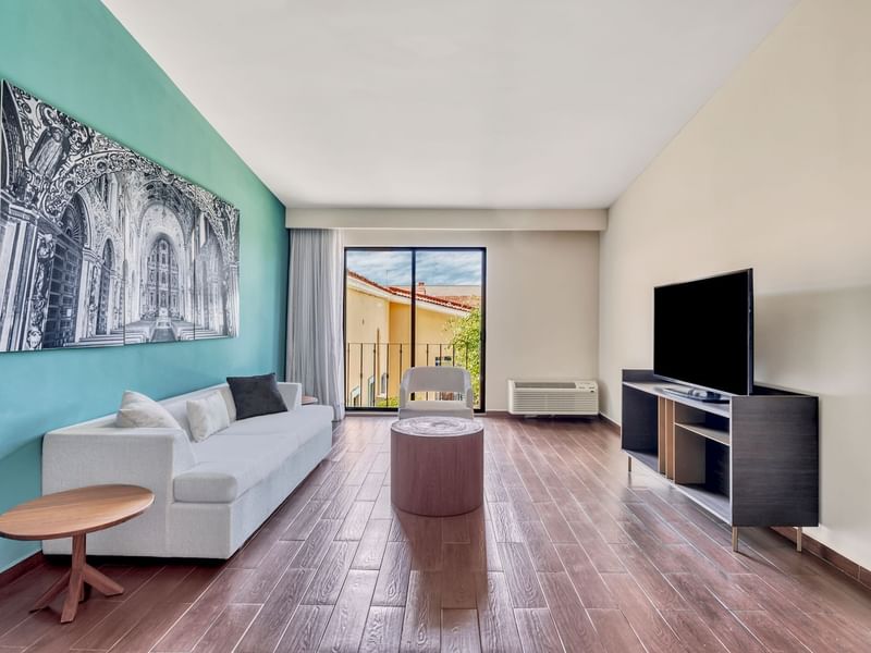Quédate en un espacio que te invita a la relajación y desconéctate de todo. Su amplitud te brinda una estancia con sala y comedor en un ambiente cálido y cómodo. Deseamos que descanses en la suave cama King Size y te recuestes en el confortable sillón. Solicita algo delicioso a room service, mientras transmites tu serie favorita desde tu dispositivo a la pantalla de TV. Toma un baño disfrutable, nos gusta que te consientas.