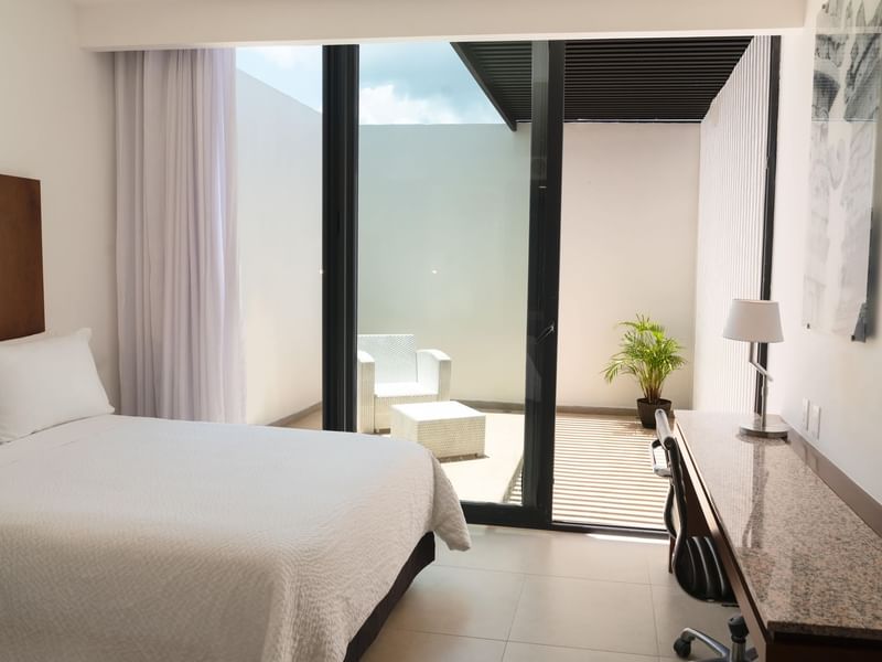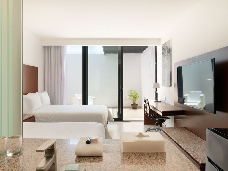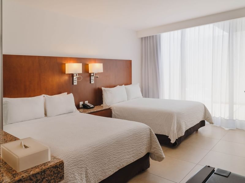 Encuentra el balance entre trabajo y descanso en esta cómoda habitación, equipada con frigobar, para que disfrutes de tus mejores momentos con tu bebida favorita, aquí tendrás a la mano esos boosts helados que te llenan de energía. Amplia, con un diseño cálido, mobiliario funcional y amenidades especiales, es un excelente lugar para descansar.