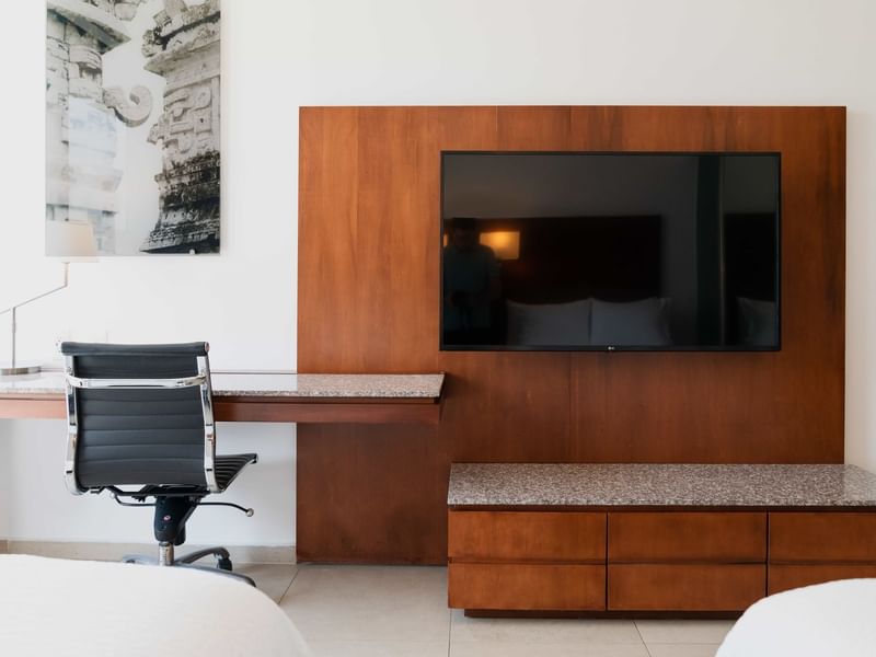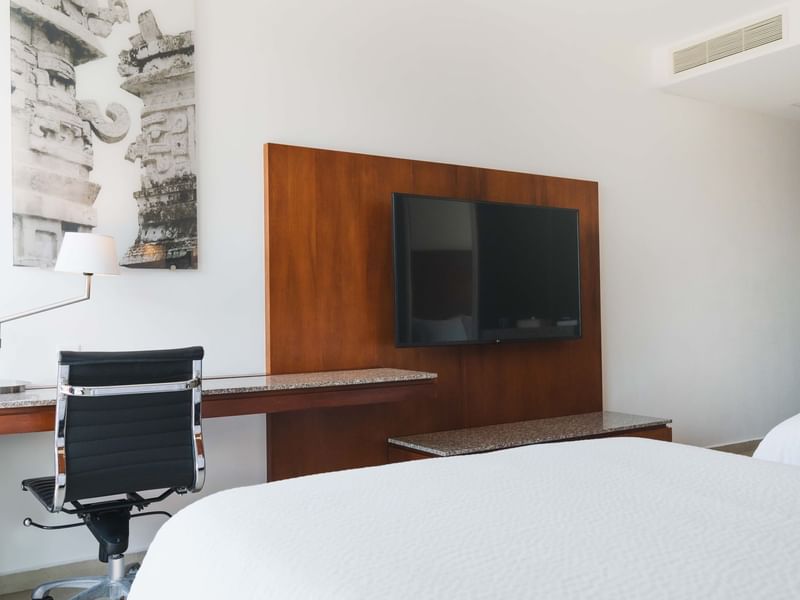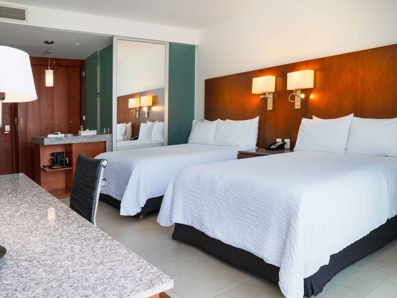 Un espacio que te invita a salir de la rutina y a la relajación. Desconéctate en tu habitación, tienes todo para pasarla bien. Deseamos que descanses en las suaves camas matrimoniales. Solicita algo delicioso a room service, mientras transmites tu serie favorita desde tu dispositivo a la pantalla de TV. Toma un baño disfrutable. Nos gusta que te consientas.
