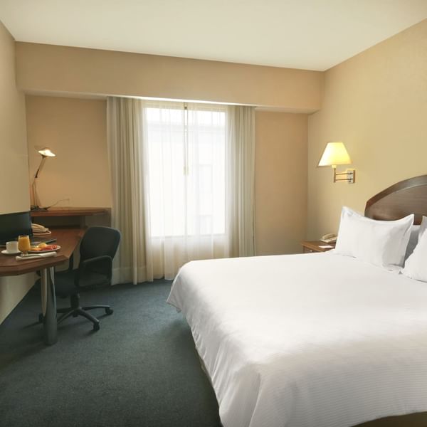 Después de cumplir tus objetivos, descansa en nuestras habitaciones. Degusta algún platillo en nuestro restaurante y si no quieres salir, cuentas con room service. Date un tiempo para ir al gimnasio, nadar en la alberca, estar en la terraza o disfrutar del jardín. Revisa tus pendientes en el Business Center o en la sala de juntas.