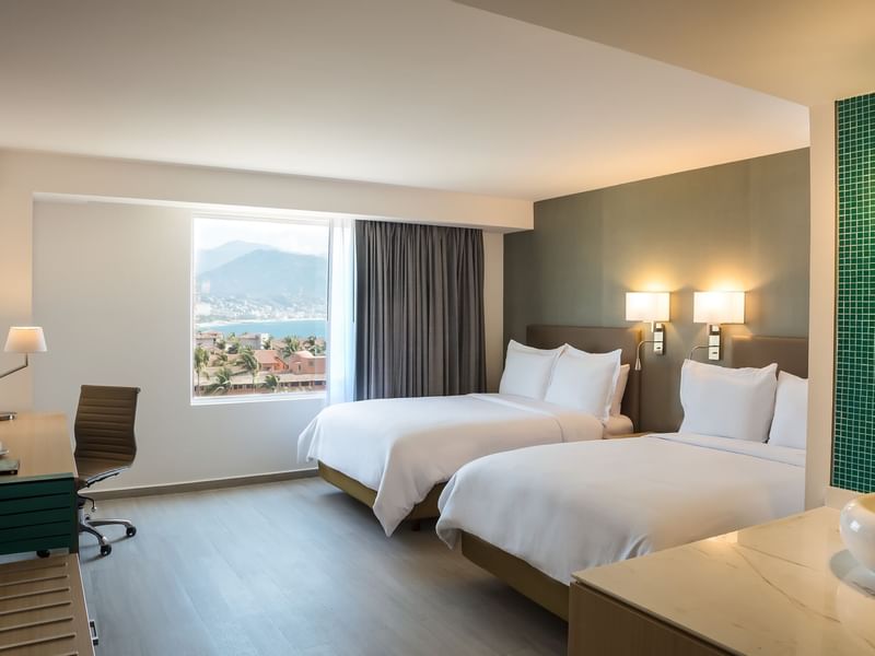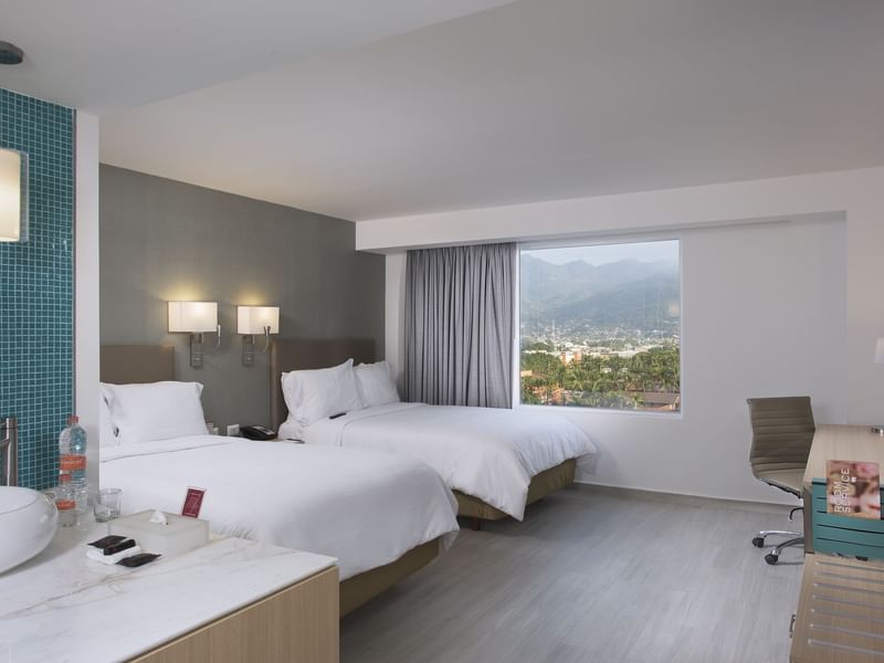 Un espacio que te invita a salir de la rutina y a la relajación. Desconéctate en tu habitación, tienes todo para pasarla bien. Deseamos que descanses en las suaves camas matrimoniales. Solicita algo delicioso a room service, mientras ves TV. Toma un baño disfrutable. Nos gusta que te consientas.