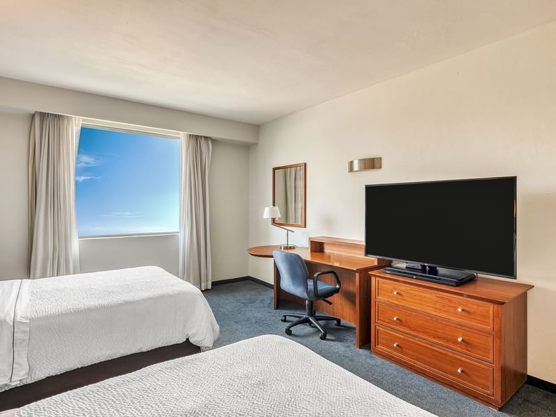 Tu habitación está diseñada para que puedas ser productivo. El ambiente es cálido y el mobiliario cómodo, te ayudará a cumplir tus planes. Queremos verte triunfar. Ten un sueño reparador y descansa profundamente en cualquiera de las camas matrimoniales. Haz una pausa, transmite tu serie favorita desde tu dispositivo a la pantalla de TV, o toma un agradable baño.