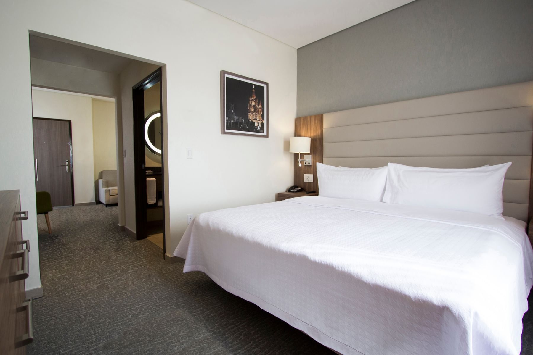 Te espera un sueño profundo en tu suite, un espacio que te invita a una relajación ideal al terminar el día. Disfruta de cada detalle.