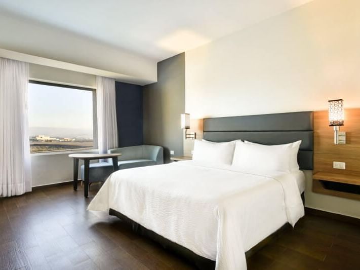 Dale balance a tu vida en esta amplia habitación diseñada y decorada a detalle. Se trata de un espacio con una renovada combinación de colores y estilo, así como mobiliario moderno y ergonómico como un sofá modular, mesa de trabajo y accesorios portables que puedes usar y adaptar a tu gusto o necesidades de viaje. Equipada con una gran cantidad de conexiones te proporciona el lugar cómodo y práctico que quieres. A través de una estructura dinámica con piezas y puertas corredizas, que modifican el espacio, incluso visualmente, tu acceso al baño y zona de arreglo se siente independiente por completo al resto de la habitación, proporcionando absoluta privacidad, incluso al prepararte tu propia taza de café o depositar tu servicio de comida. Se trata de una confortable e intuitiva estancia, que te brinda seguridad, soluciones completas, la mejor atención y calidad en servicios.