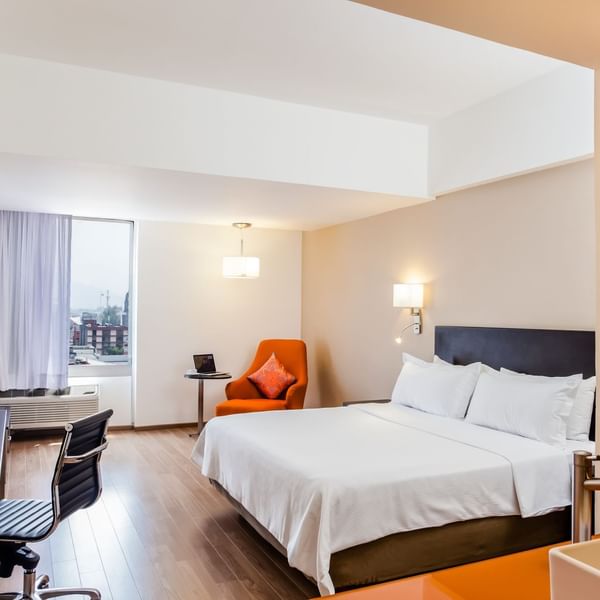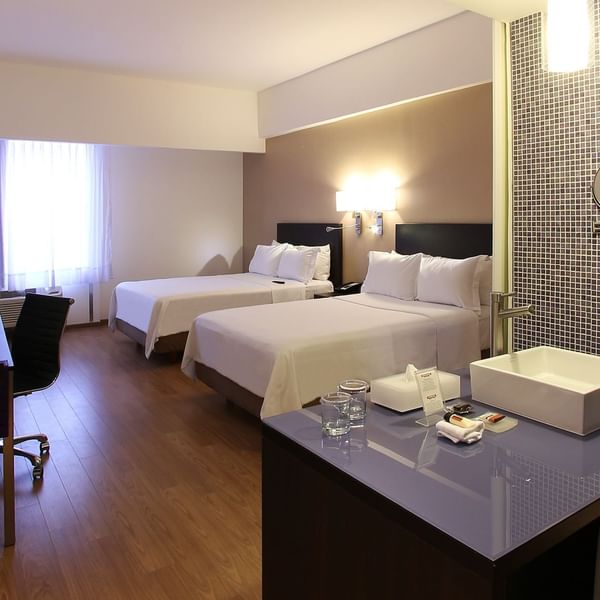 Después de cumplir tus objetivos, descansa en nuestras habitaciones. Degusta algún platillo en nuestro restaurante y si no quieres salir, cuentas con room service. Date un tiempo para ir al gimnasio.