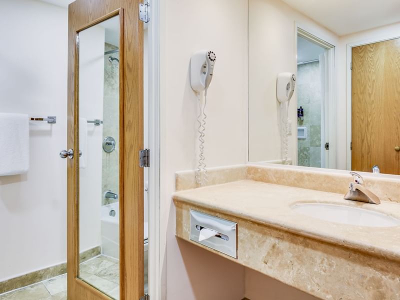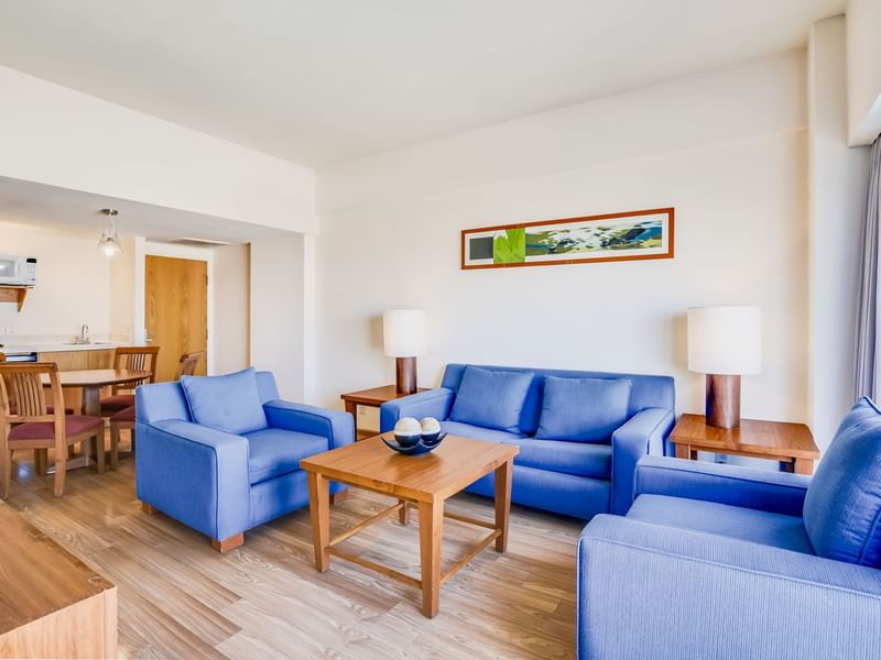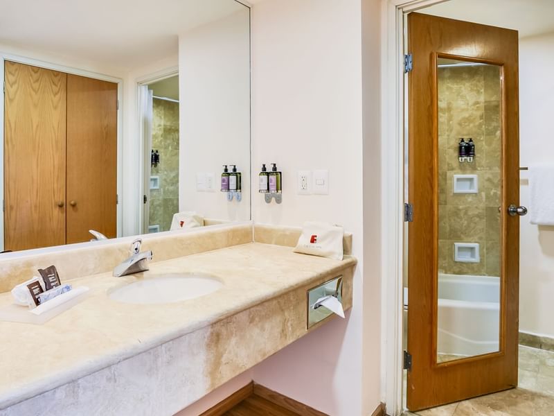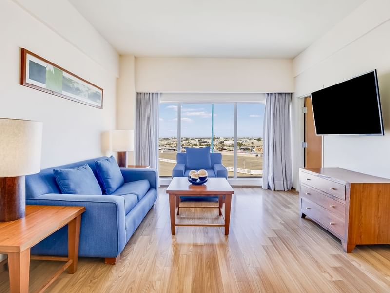 El ambiente relajado y moderno de esta suite, con amenidades especiales que le agregan valor a tu experiencia, te ayudará a despejar tu mente, por si tienes que terminar algún pendiente, solo relájate en la cama King Size, disfrutando de la TV, escuchando tu música favorita o leyendo algún libro. Encuentra el balance y disfruta tu estancia gracias al mobiliario funcional y agradable de esta habitación.