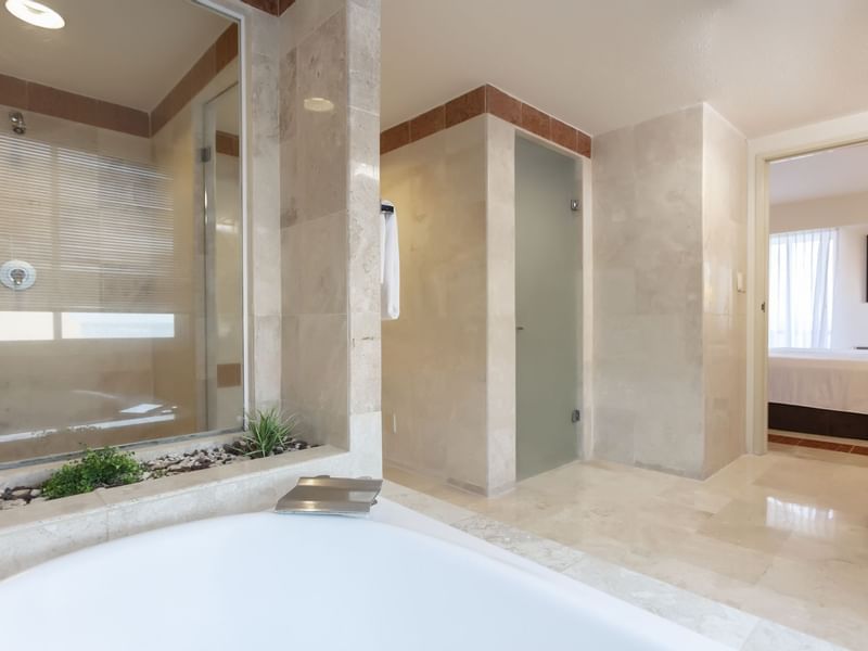 La privacidad de tu balcón será ideal para desconectarte. El ambiente de esta habitación es cálido, el mobiliario cómodo y cuenta con una terraza privada. Deseamos que descanses en la suave cama King Size y te recuestes en el confortable sillón. Solicita algo delicioso a room service, mientras ves la TV. Toma un baño disfrutable. Nos gusta que te consientas.