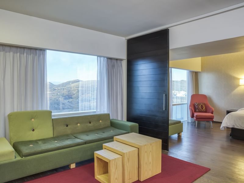 Cada detalle de nuestra Master Suite te brindará la opción de ser productivo en este espacio amplio y cálido. En esta agradable habitación podrás relajarte con las amenidades que te aportarán a equilibrarte con un mobiliario cómodo, que te facilitará cumplir con tus planes. Ten un sueño reparador y descansa profundamente en la cama King Size. Solicita a room service lo que desees del menú, y disfruta de la privacidad de tu sala mientras continúas revisando tus pendientes. Para tu comodidad incluye horno de microondas, mini refrigerador y alacena, así como un comedor para cuatro personas. Haz una pausa, transmite tu serie favorita desde tu dispositivo a la pantalla de TV, toma un baño o recuéstate en el confortable sillón.