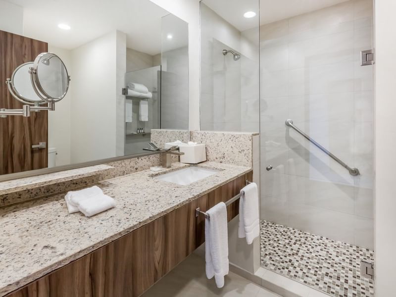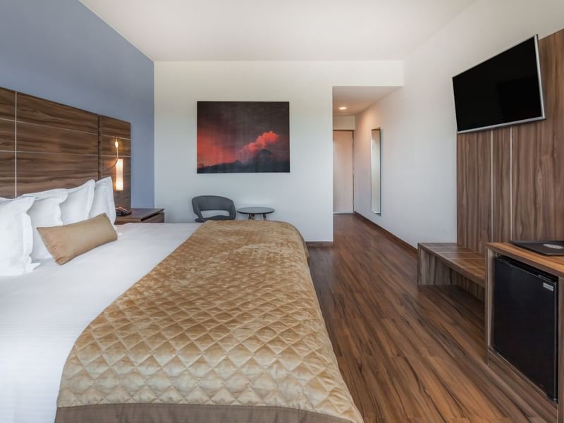Vive una estancia llena de momentos encantadores en esta confortable habitación para no fumadores. Cuenta con una cama King Size, área de trabajo con silla ergonómica, Smart TV de 40 pulgadas con sistema Sky, ventanas de doble vidrio, amplios baños, piso de madera, caja de seguridad, minibar y acceso inalámbrico a Internet de alta velocidad en todo el hotel.