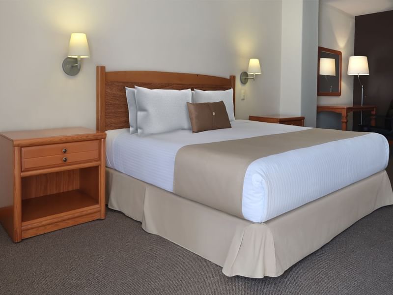 Siente el placer de relajarte en esta habitación iluminada que posee una amplitud encantadora con un balcón que te regala una vista a la avenida principal. Relájate con su confortable cama King size y todas sus comodidades dispuestas para ti, incluyendo aire acondicionado y calefacción, una cafetera con café disponible en tu habitación, pantalla plana para momentos de disfrute y relajación, baño privado con regadera, WC y todos los esenciales como secadora de pelo. Después de explorar la esencia de este destino, te esperamos en Gamma para que continúe tu experiencia.