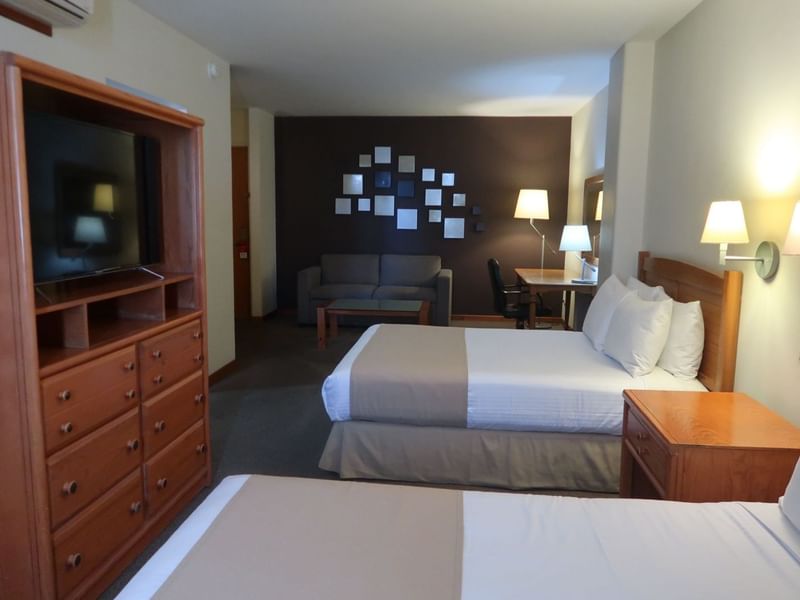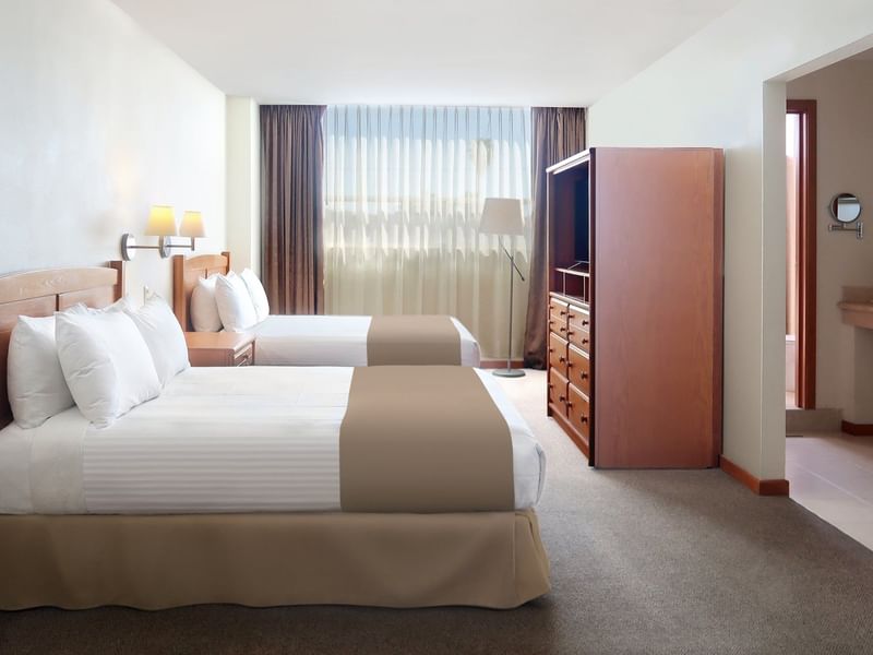 Vive una estancia llena de momentos encantadores en esta confortable habitación de gran amplitud y bella iluminación, que posee un balcón que te regala una vista a la avenida principal, así como dos camas matrimoniales para un pleno descanso. Está equipada con dos baños, amenidades superiores, cafetera que dispone de café cada que lo desees, pantalla plana para momentos de disfrute y relajación, baño privado con regadera, WC y todos los esenciales como secadora de pelo. Después de explorar la esencia de este destino, te esperamos en Gamma para que continúe tu experiencia.