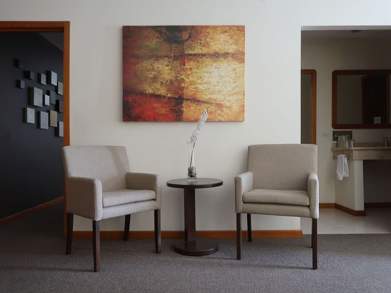 Esta hermosa suite te brinda espacios encantadores con un estilo moderno para una estancia compartida. Envuélvete en la suavidad de la bata y disfruta la comodidad de las pantuflas mientras te relajas en la sala completa. Prepara tus bebidas y snacks favoritos con facilidad gracias a la barra, el microondas, el frigobar y la cafetera, acompañados por una selección completa de utensilios de cocina. Creada para alojar a dos personas, esta suite está amueblada para ofrecer la máxima comodidad en tu estancia; disfruta de la luz natural que ilumina durante el día y saborea el pacífico silencio de la noche. Con espacio suficiente para relajarte en el sillón o concentrarte en la mesa de trabajo, cuenta con pantalla plana para momentos de disfrute y relajación, baño privado con regadera, WC y todos los esenciales como secadora de pelo. Después de explorar la esencia de este destino, te esperamos en Gamma para que continúe tu experiencia.