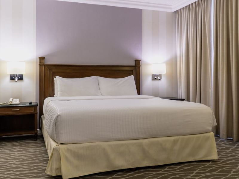 La amplitud y el confort es parte de este diseño que hará que tengas una estancia increíble. Esta suite cuenta con una cama King size, comedor para 4 personas, sofá, pantalla de 32", cafetera, caja de seguridad, tabla de planchar, plancha, reloj despertador, teléfono, baño equipado con regadera y WC. Admira las extraordinarias vistas que te ofrece a las montañas y a la alberca.