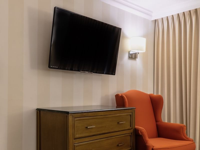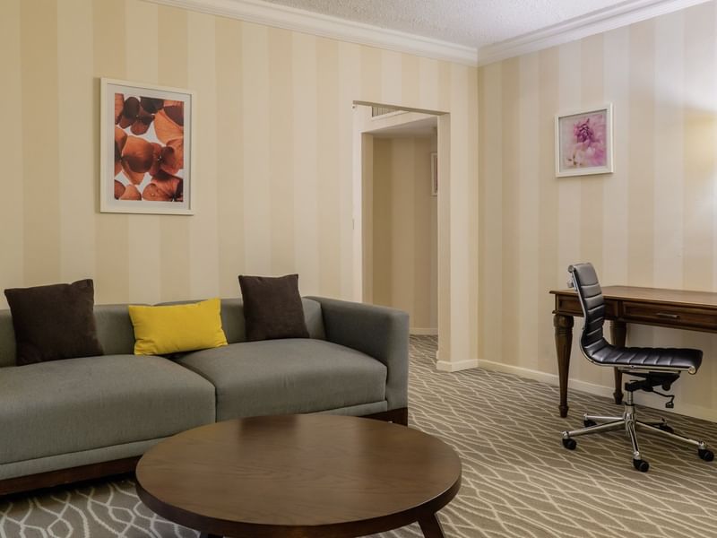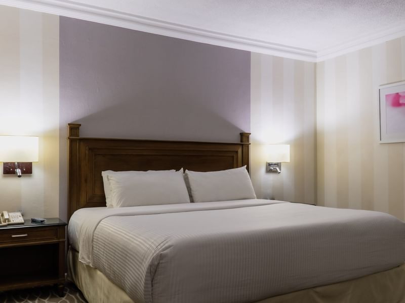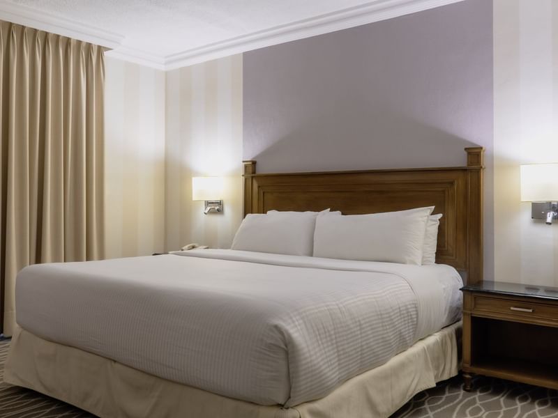 Amplios espacios para compartir hermosos momentos, donde la comodidad y el disfrute son parte de tu estancia, ya que tu habitación se comunica con una habitación con camas matrimoniales; ideal para un viaje en familia o amigos. Cuenta con una cama King Size y dos camas matrimoniales, refrigerador, caja fuerte, además de todos los servicios necesarios para una grata estancia. Además le regala dos encantadoras vistas a la plaza y al Cerro de la Silla.