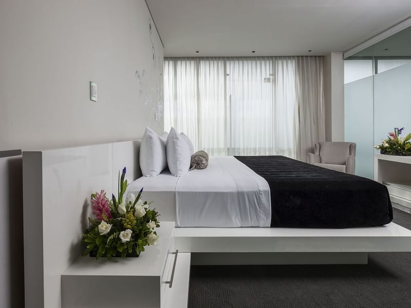 Todos los detalles han sido colocados para tu comodidad y descanso, cuidando que la armonía y esencia de la maravillosa ciudad se reflejen en esta suite. Compuesta por una cama King size y una habitación adicional con cama King size, terraza con mesa y sillas, sala, cocina equipada, comedor, sala, dos baños equipados con regadera y WC, caja de seguridad, sillones adicionales, credenza y clóset.