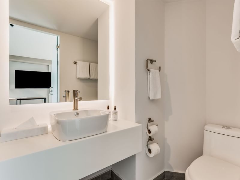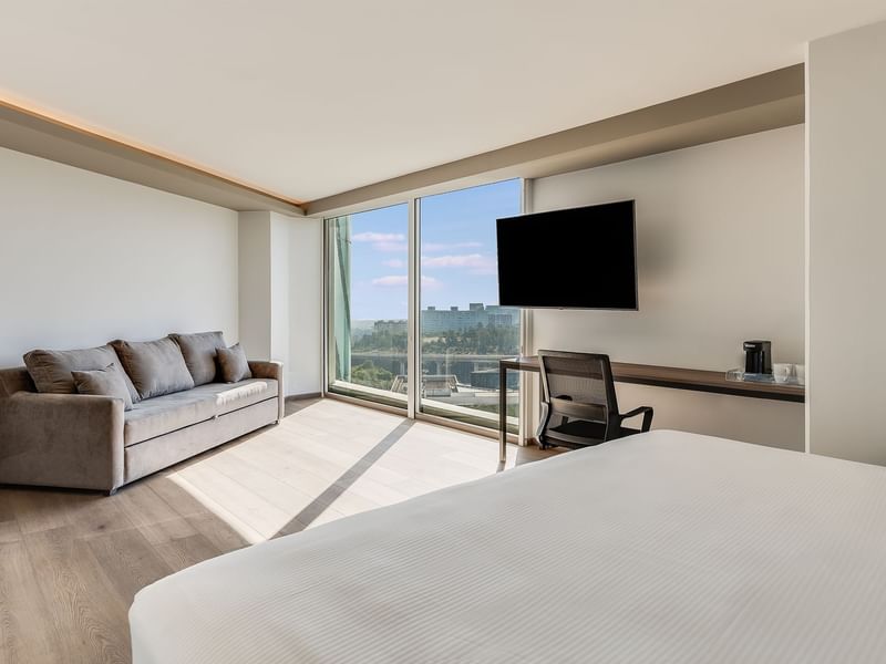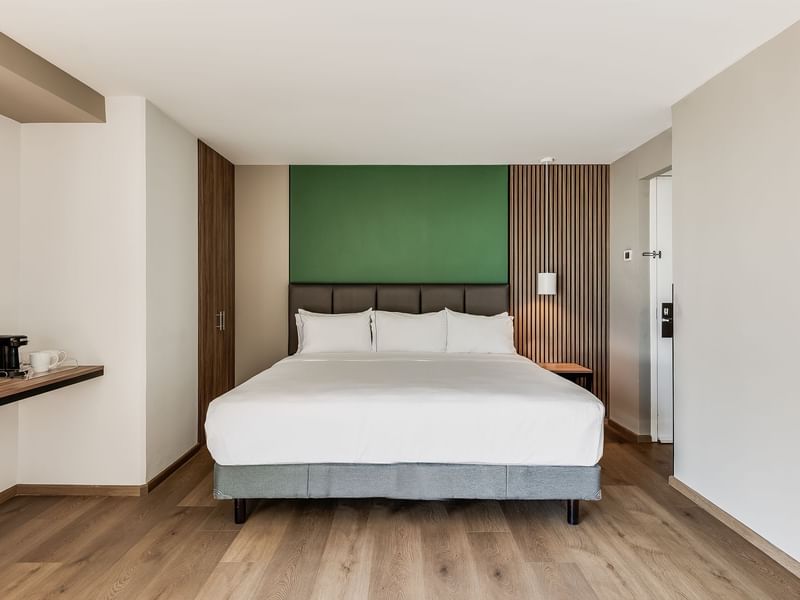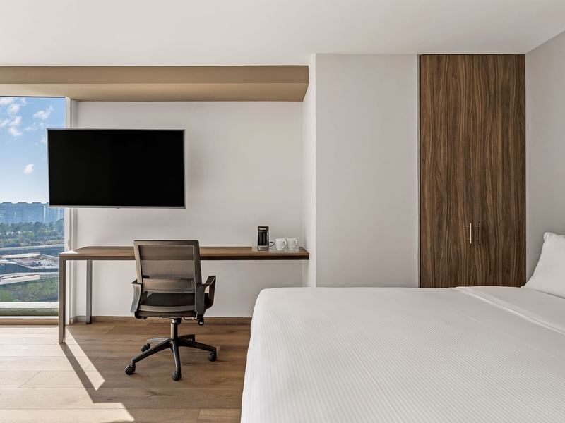 Espacio, comodidad y un diseño pensado para que tu estancia sea inolvidable. Esta suite remodelada te ofrece una amplia cama King, vistas panorámicas de la ciudad y un área de descanso con sofá cama. Equipada con TV de 55”, cafetera, secadora de cabello, caja de seguridad e internet, es el lugar perfecto para trabajar, relajarte o simplemente disfrutar. Espacio libre de humo.