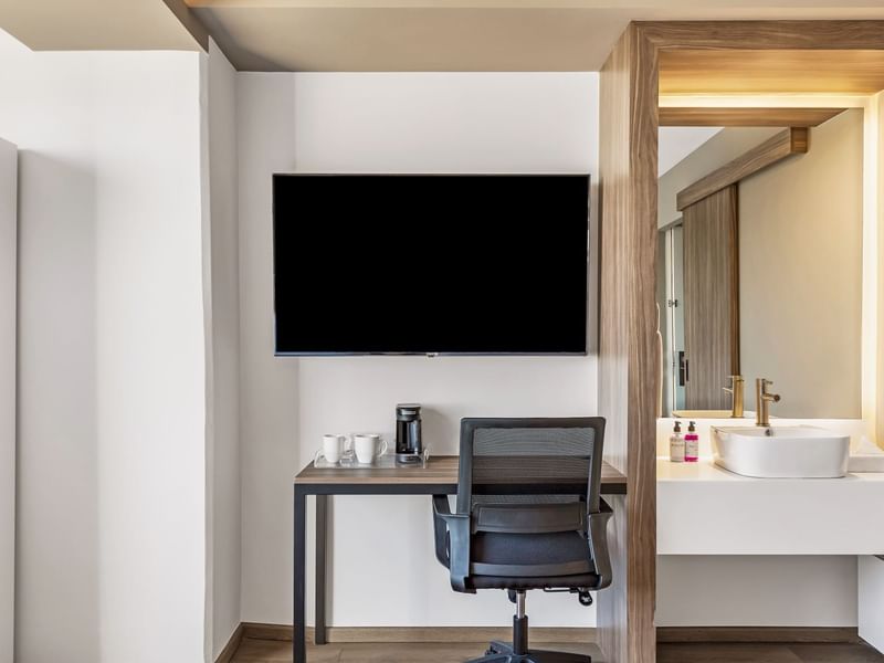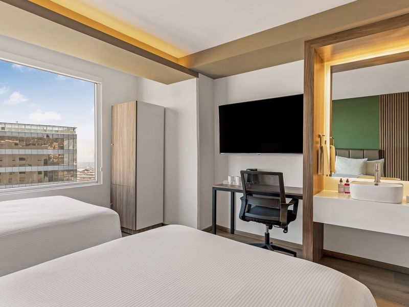 Un espacio acogedor donde cada detalle invita al descanso. Esta habitación remodelada tiene el equilibrio perfecto entre comodidad y funcionalidad. Desde su cama Twin con vistas a la ciudad hasta el escritorio, la TV de 55”, acceso a internet, la cafetera y secador de cabello, todo está diseñado para que disfrutes el momento. Espacio libre de humo.