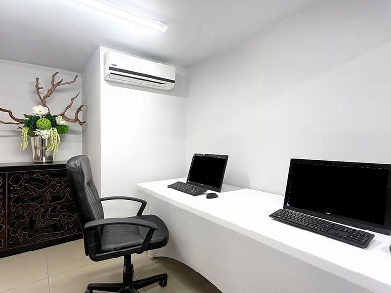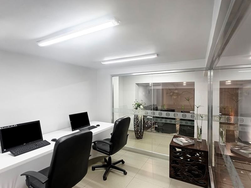 Centro de negocios climatizado, equipado con 2 Pc, WiFi, servicio adicional de copiado, impresoras y scaners.