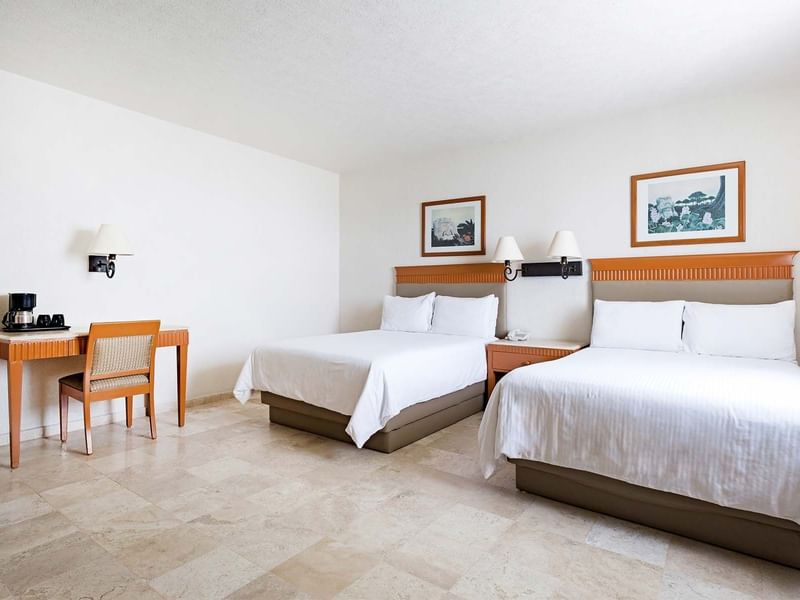 Enamórate de la magia local en este espacio exclusivo para una estancia única. Déjanos consentirte y disfruta de las comodidades de esta habitación. Cuenta con dos camas matrimoniales, amplios espacios, minibar, cajas de seguridad, mesa de planchado y plancha, secador de pelo y pantalla de 50".