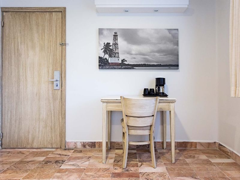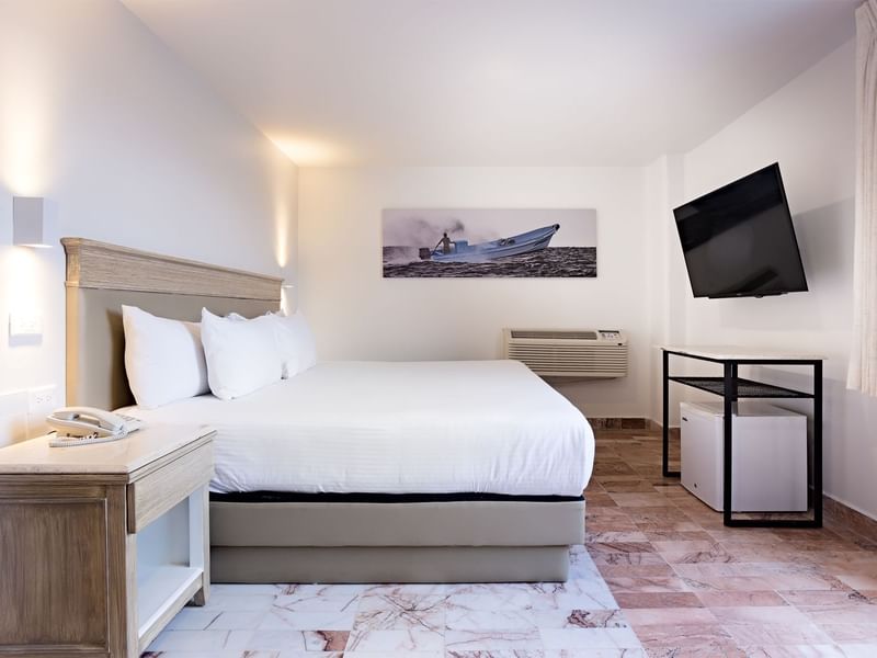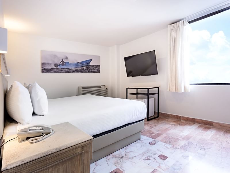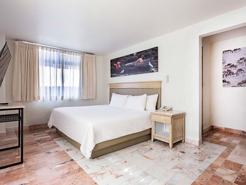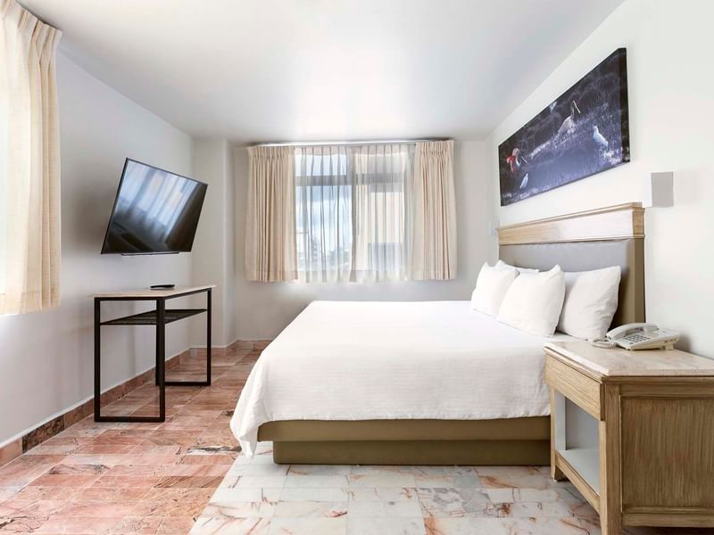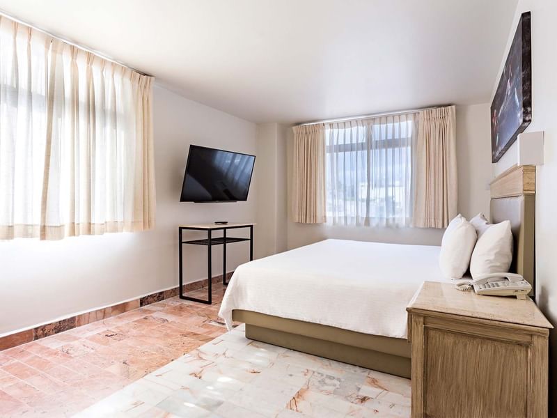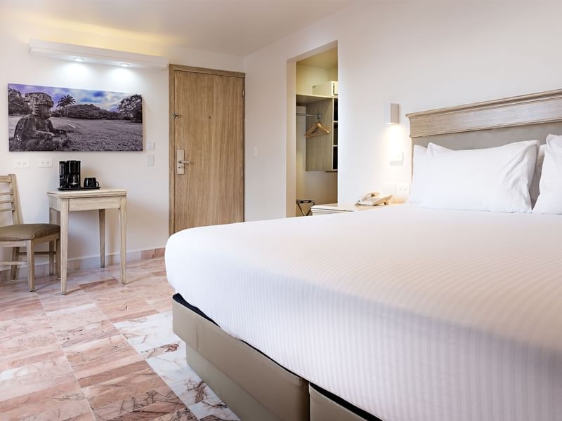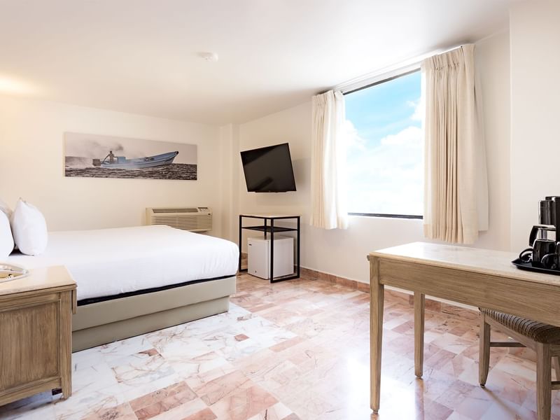 Disfruta el encanto de esta confortable habitación que te invita a descansar plenamente. Cuenta con cama King Size, cafetera, secador de pelo, pantalla de 32", mesa de planchar, plancha y caja de seguridad. Somos Dog Friendly.