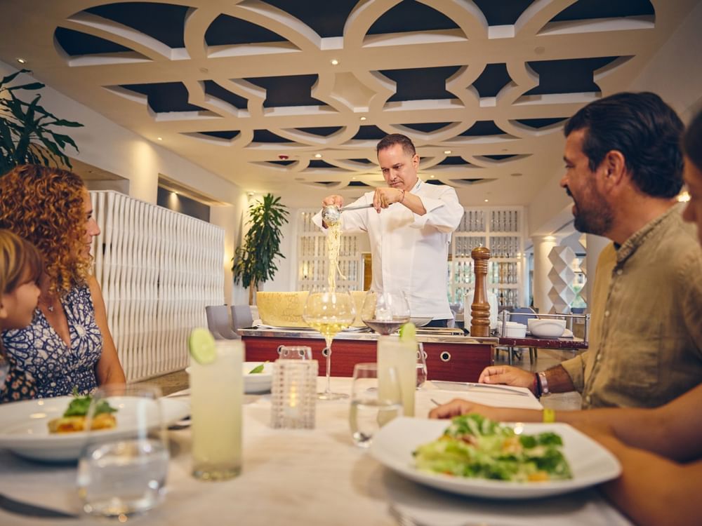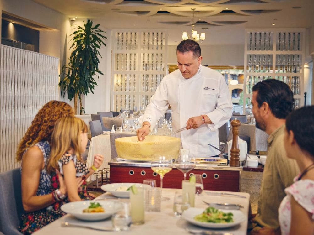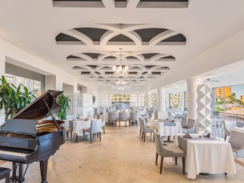 En este lujoso rincón del hotel, disfrutará de un ambiente refinado, sutil y sin pretensiones, creado únicamente para deleitar el paladar con platillos mediterráneos con acento italiano. La experiencia se eleva a un nivel completamente nuevo mientras se deleita con una copa de excelente vino y disfruta del impresionante paisaje que el cielo nos regala al cambiar de color durante la cena. Este restaurante muestra un concepto de cocina gourmet cuya esencia es el sabor italiano, pero con una maravillosa gama de creaciones internacionales. Es un momento mágico que sólo uno de los mejores restaurantes de Los Cabos puede ofrecer a sus distinguidos huéspedes.