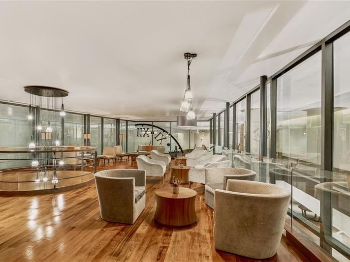 Espacio abierto ideal para networking y trabajo colaborativo en un ambiente flexible.