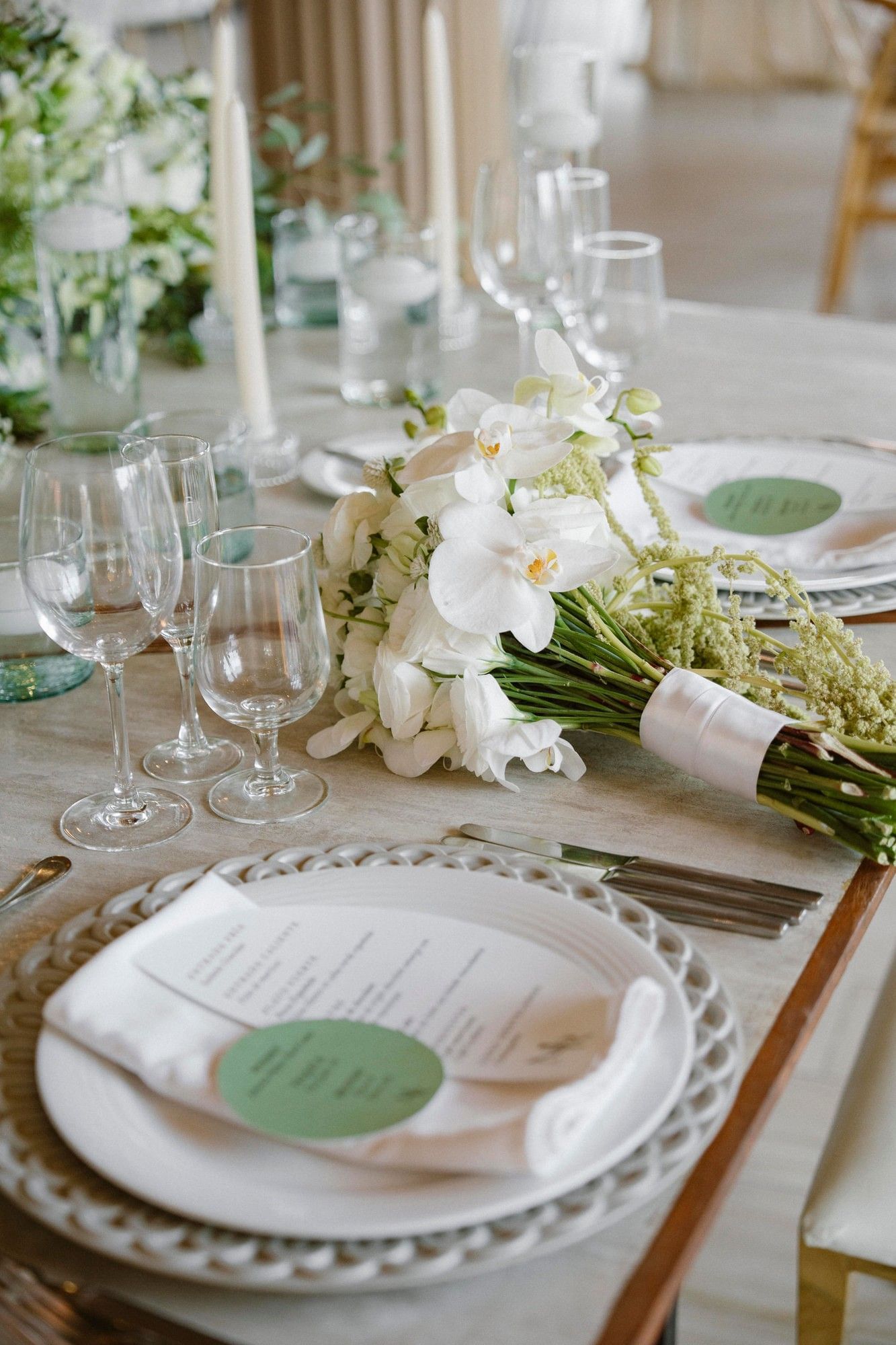 - Platos base y mantelería especial a elección.