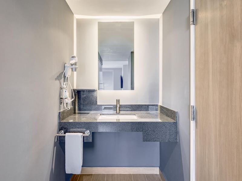 Relájate en una habitación equipada con cama Queen, clóset, escritorio de trabajo, wifi gratuito, teléfono con correo de voz, TV por cable, aire acondicionado y calefacción. Dispones de múltiples contactos y amenidades que cuidan el medio ambiente. Las persianas black-out crean la atmósfera perfecta para un descanso profundo.