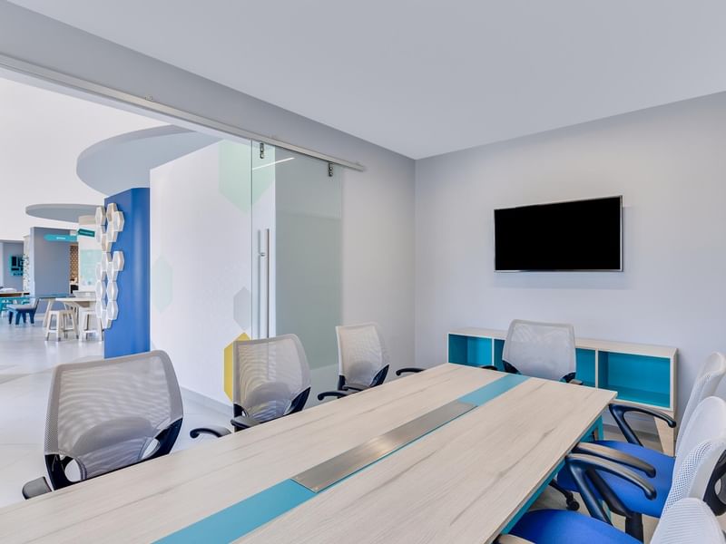 Reúnete en nuestra sala ejecutiva que cuenta con la privacidad que necesitas para ocho personas, completamente equipada para reuniones productivas con tu equipo de trabajo o compañeros de viaje. Si lo necesitas puedes disponer de la pantalla Smart TV con conexión HDMI.