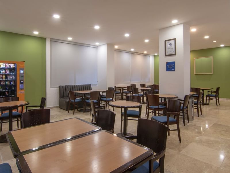 Mesas de comedor en la sala de desayunos del Fiesta Americana Travelty