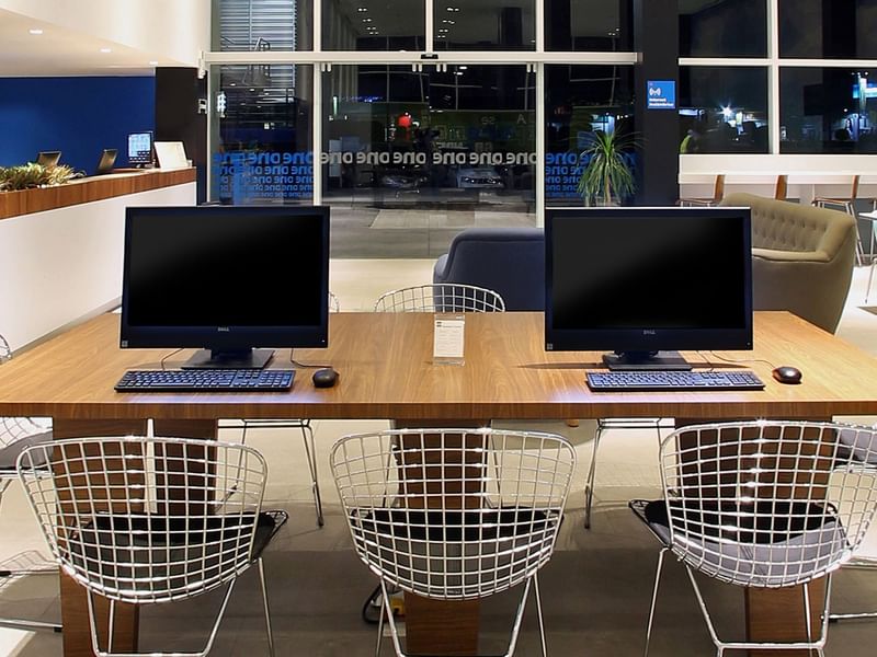 Estación de trabajo junto al lobby del centro de negocios de One Hotels