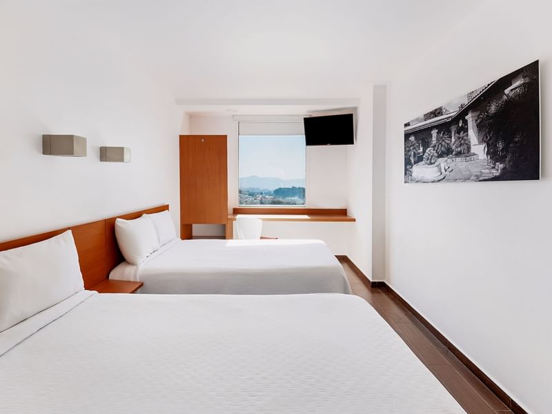 Te va a encantar quedarte aquí. Tu habitación es ideal para lo que necesitas. Descansa, siéntete seguro y cómodo. Cuenta con dos camas individuales, clóset, escritorio de trabajo, internet inalámbrico gratuito, teléfono, TV por cable, aire acondicionado y calefacción. Dispones de múltiples contactos para seguir conectado con el mundo. Nuestras amenidades son generosas y cuidan el planeta. Cuando llega el momento de dormir, las persianas black-out crearán la atmósfera ideal para tener dulces sueños.