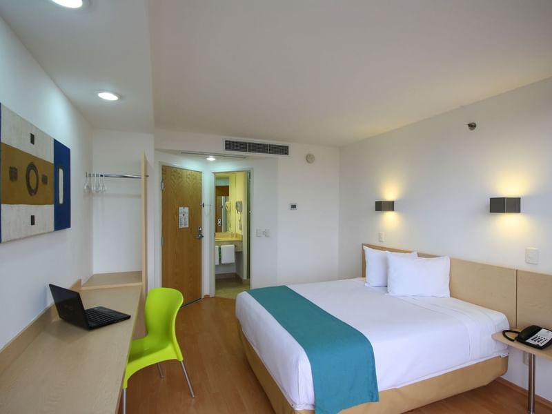Te mereces un buen descanso cuando estás de viaje. Disfruta de un espacio cómodo y agradable. Tu habitación cuenta con una cama Queen, clóset, escritorio de trabajo, internet inalámbrico gratuito, teléfono, correo de voz, TV por cable, clóset, aire acondicionado y calefacción. Dispones de múltiples contactos para seguir conectado con el mundo. Nuestras amenidades son generosas y cuidan el planeta. Cuando llega el momento de dormir, las persianas black-out crearán la atmósfera ideal para tener dulces sueños.
