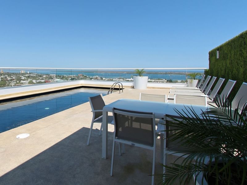 Pasa un rato agradable en nuestra alberca con vista a toda la ciudad desde la terraza.