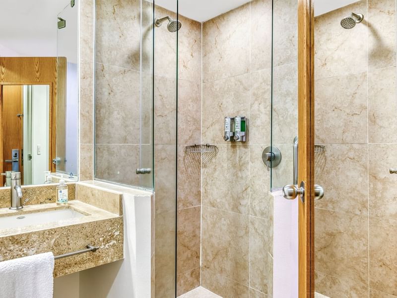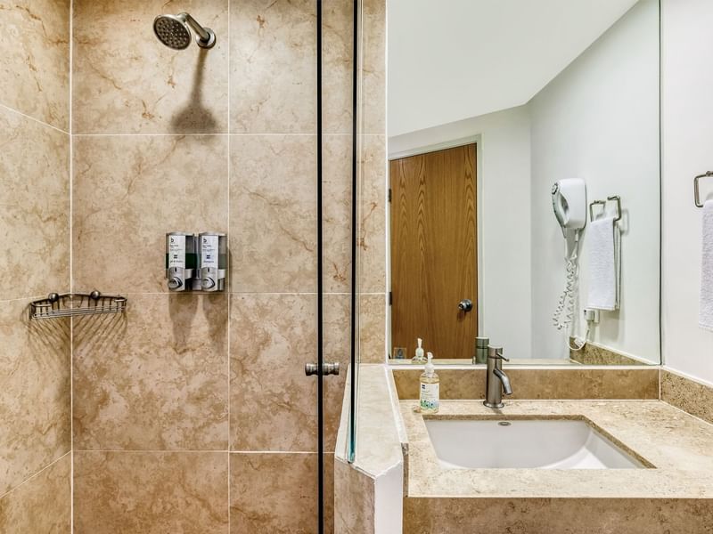 Te mereces un buen descanso cuando estás de viaje. Disfruta de un espacio cómodo y agradable. Tu habitación cuenta con una cama Queen, clóset, escritorio de trabajo, internet inalámbrico gratuito, teléfono, correo de voz, TV por cable, aire acondicionado y calefacción. Dispones de múltiples contactos para seguir conectado con el mundo. Nuestras amenidades son generosas y cuidan el planeta. Cuando llega el momento de dormir, las persianas black-out crearán la atmósfera ideal para tener dulces sueños.