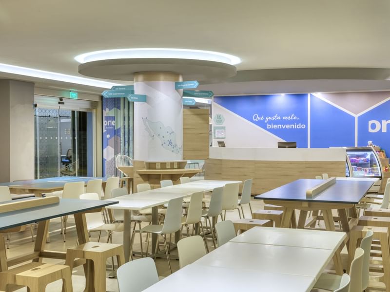 Las mañanas en one inician con nuestro delicioso desayuno one Start. Comienza con algo calientito, disfruta ricos platillos, fruta, jugo y pan. Haz un upgrade a tu desayuno a one Start Plus que incluye platillos regionales y una variedad de bebidas.  A lo largo del día complace tus antojos que podrás llevar contigo.