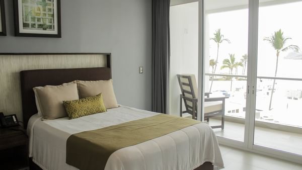 Descansa en habitaciones diseñadas para brindarte frescura, comodidad y el toque único de Sunvivia by Fiesta Americana Mazatlán.