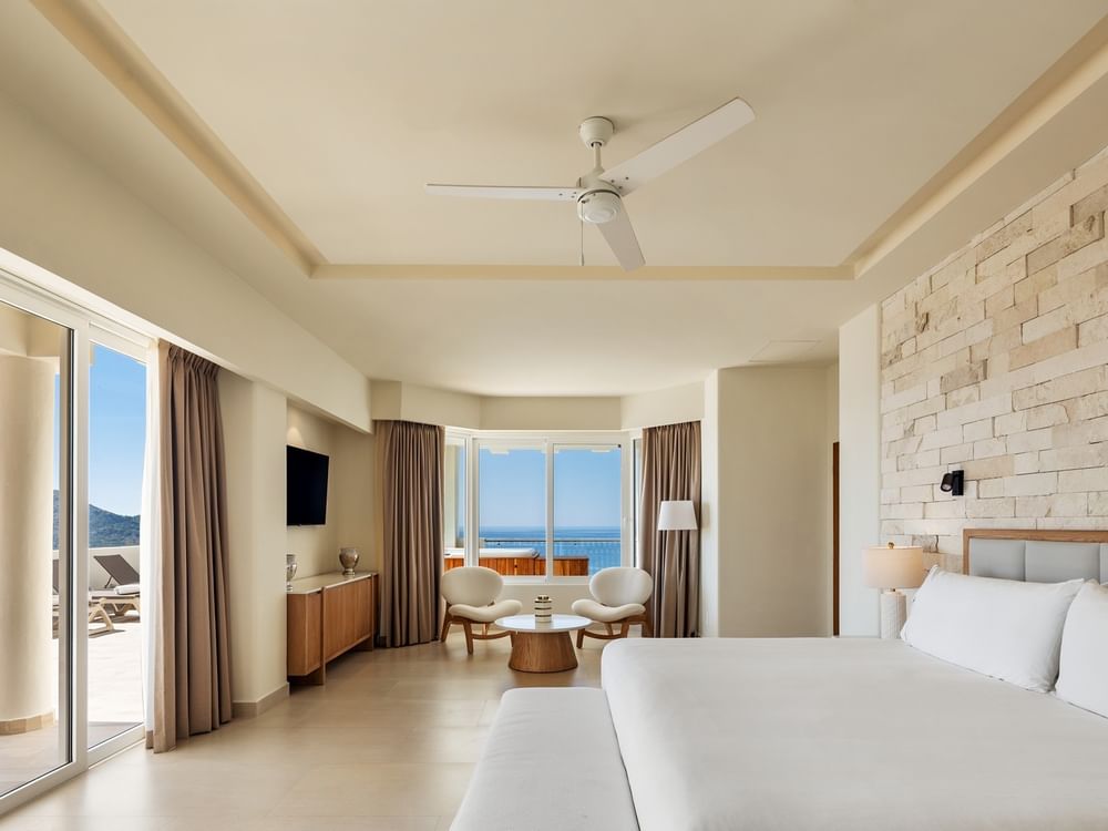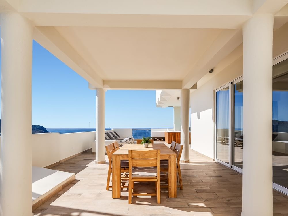 Confort y belleza, unidos en la alegría del descanso. Nuestro espectacular Penthouse de tres habitaciones es un refugio espectacular diseñado para disfrutar momentos inolvidables con la familia o los amigos. Uno de los dormitorios privados cuenta con una cama king size y un elegante baño completo con jacuzzi, mientras que los otros dos dormitorios ofrecen dos camas dobles y sus propios baños completos. Un cuarto baño adicional en la zona común brinda aún más comodidad. Con una cocina totalmente equipada, un comedor para diez personas y una amplia sala de estar con sofá cama; este ático es el escenario ideal para celebrar los pequeños placeres de la vida. Desde la terraza privada con jacuzzi, las vistas al mar transforman cada amanecer en inspiración y cada atardecer en contemplación. Momentos únicos que se convierten en memorias eternas. Sin prisa, sin planes… así se vive la alegría del descanso.