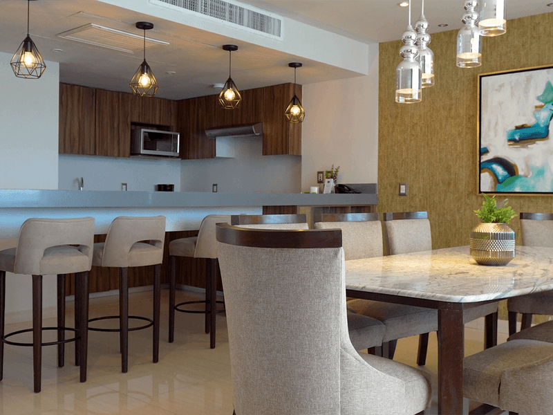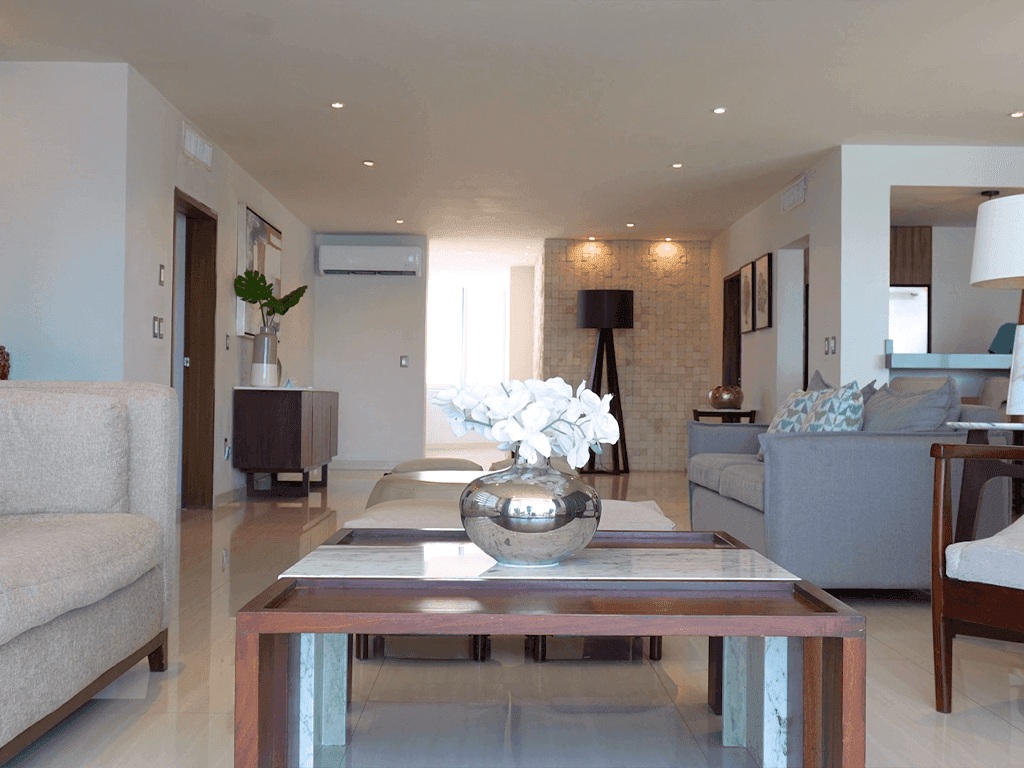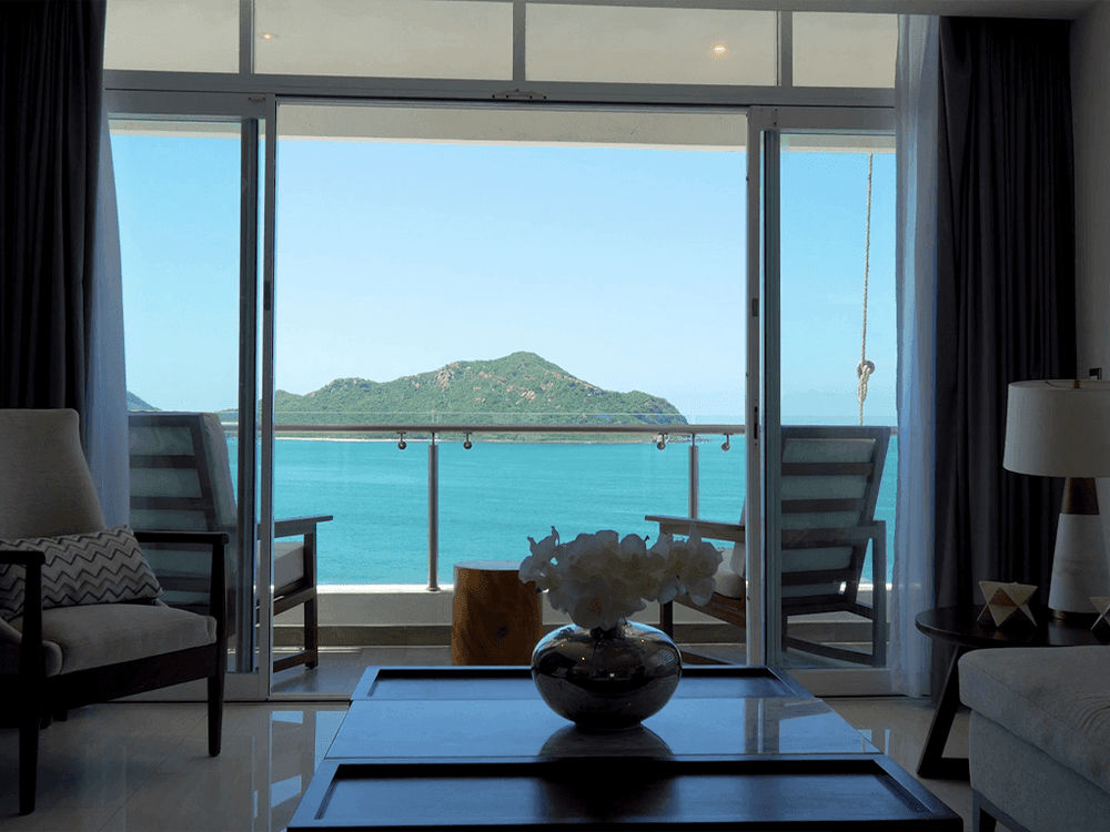 El lujoso Penthouse de dos habitaciones está diseñado para realzar cada momento de alegría. Una de las habitaciones privadas cuenta con una cama king size y un cuarto de baño completo con jacuzzi para una relajación total, mientras que la segunda habitación privada ofrece dos camas dobles y su propio cuarto de baño completo. Un tercer cuarto de baño en la zona común añade una comodidad adicional. Con una cocina completa, un comedor para ocho personas y una amplia sala de estar con sofá cama, este ático es perfecto para reunirse, compartir comidas y crear recuerdos imborrables. Desde sus impresionantes vistas al mar, cada amanecer y cada atardecer se convierten en parte de una estancia inolvidable.