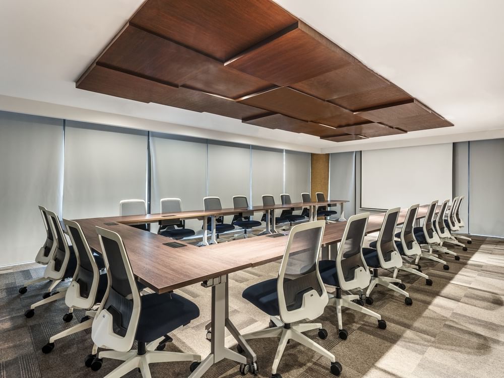 Un Business Center pensado para encuentros estratégicos y colaborativos. Con capacidad para hasta 30 personas en montaje tipo herradura, está equipado con pantalla de proyección y sonido integrado.